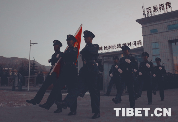 圖為(wei) 官兵在旗杆下列隊。攝影:曾雲(yun)