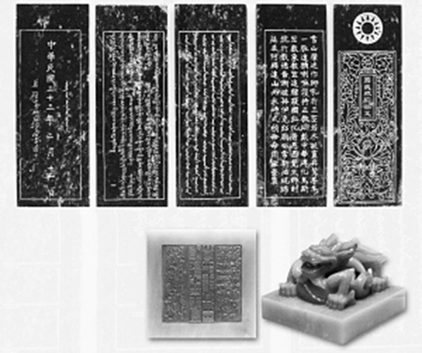 謝國梁奔波於(yu) 藏事,為(wei) 中央政府與(yu) 西藏地方關(guan) 係的恢複發揮了橋梁作用。圖為(wei) 第十三世達賴喇嘛圓寂後,國民政府追贈其為(wei) “護國弘化普慈圓覺大師”的稱號,並頒發玉冊(ce) 、玉印。圖片來源:人民網—西藏頻道。
