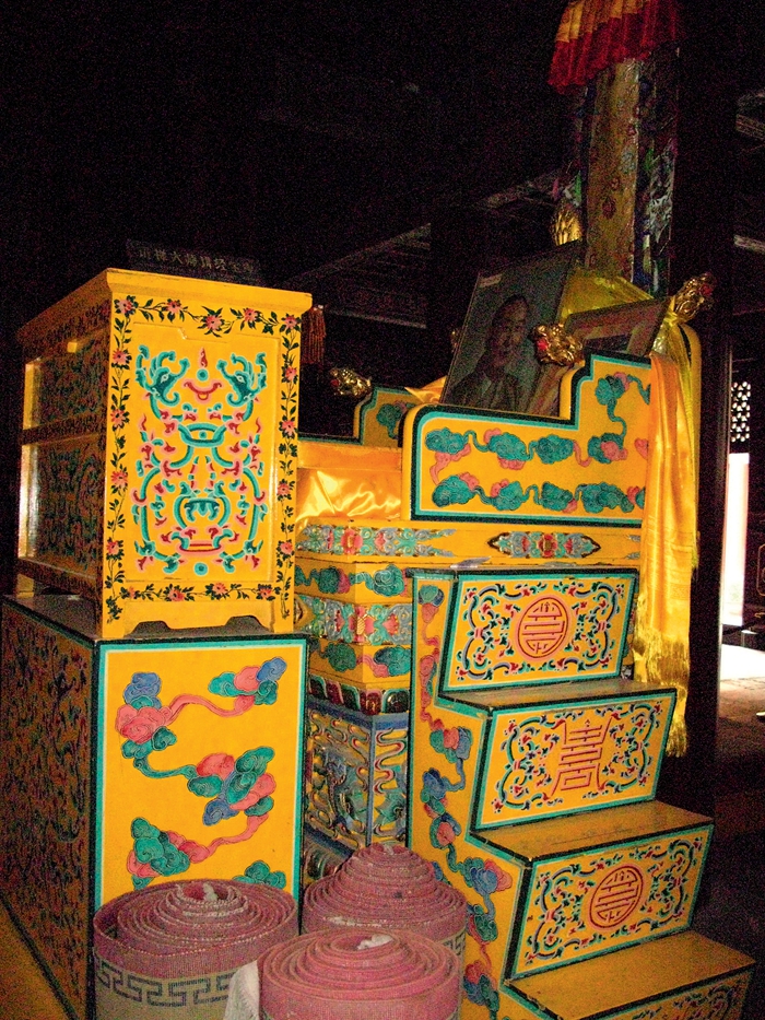 雍和宮法輪殿內(nei) 東(dong) 側(ce) 十世班禪大師講經寶座。