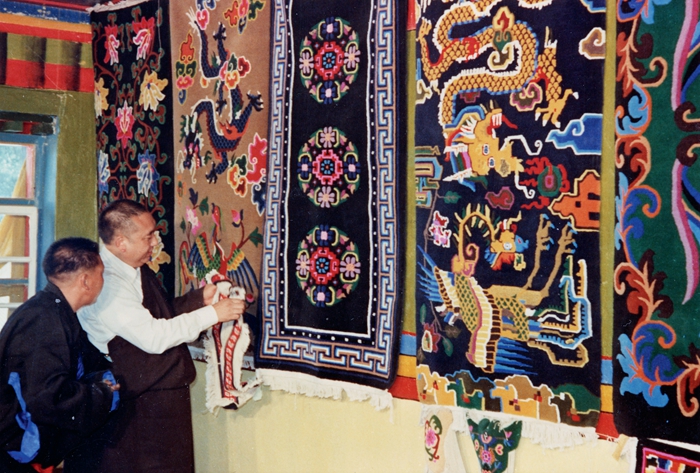 1982年7月,十世班禪大師視察拉薩團結卡墊生產(chan) 合作社。劉麗(li) 嘉攝