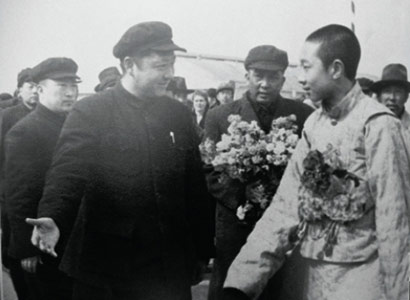 1951年4月中旬,習(xi) 仲勳與(yu) 十世班禪第一次會(hui) 麵。那時,十世班禪率領班禪堪布會(hui) 議廳官員赴京途經西安,習(xi) 仲勳作為(wei) 西北局和西北軍(jun) 政委員會(hui) 主要負責人,到機場迎接。班禪走下飛機時,一個(ge) 眉清目秀、和善聰慧、舉(ju) 止文雅、彬彬有禮的英俊藏族少年活佛形象,出現在習(xi) 仲勳的眼前。在飛機舷梯下,十世班禪緊緊握住習(xi) 仲勳的手,心情激動地說:“我們(men) 是專(zhuan) 程去北京向毛主席致敬的!我要把藏族人民對中央人民政府和毛主席的良好祝願親(qin) 口轉達給毛主席。”在當晚歡迎會(hui) 上,十世班禪表示堅決(jue) 擁護中央人民政府,決(jue) 心與(yu) 西藏各界愛國人士一道為(wei) 西藏的解放和藏族人民的團結努力奮鬥。“有誌不在年高”,十世班禪的愛國熱情和坦誠豪爽的性格給習(xi) 仲勳留下了深刻的印象。當天,習(xi) 仲勳把他接到西北局大院自己家中,十世班禪與(yu) 習(xi) 仲勳的大兒(er) 子習(xi) 富平同齡,兩(liang) 人很快就熟稔起來。