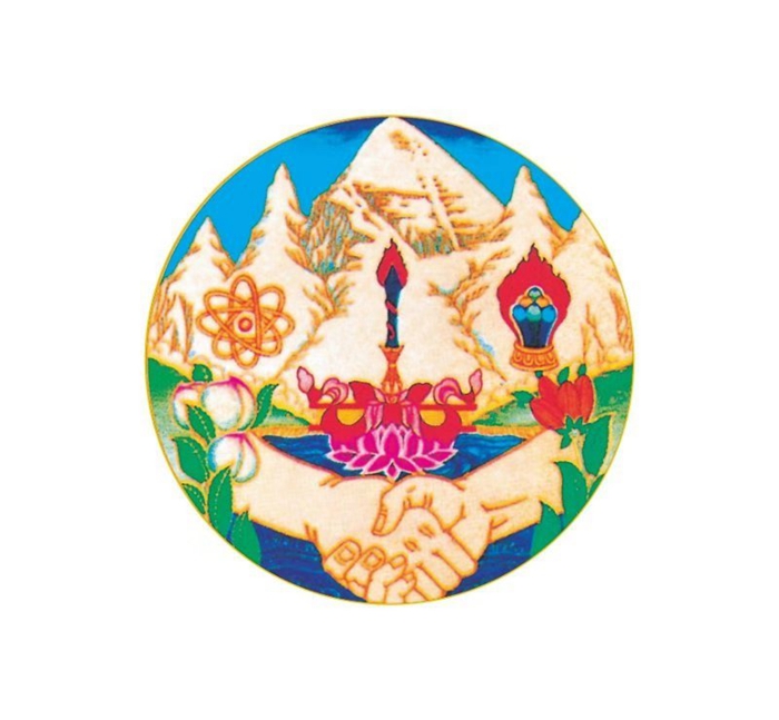 圖為(wei) 十世班禪大師親(qin) 自設計並請畫家洛鬆向秋付諸筆端的援助西藏發展基金會(hui) 徽標。