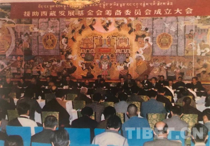 圖為(wei) 1987年4月15日,在人民大會(hui) 堂西藏廳召開的援助西藏發展基金會(hui) 籌備委員會(hui) 成立大會(hui) 。
