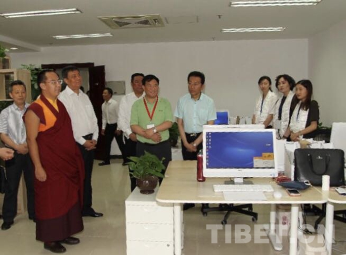 圖為(wei) 2018年6月6日,援助西藏發展基金會(hui) 理事長十一世班禪大師在北京辦公室現場指導工作。