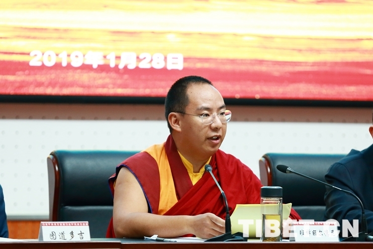圖為(wei) 十一世班禪在研討會(hui) 上講話。攝影:陳衛國