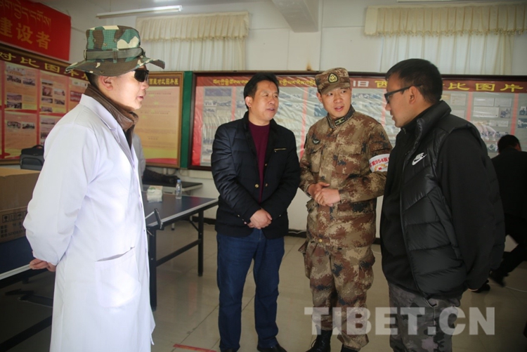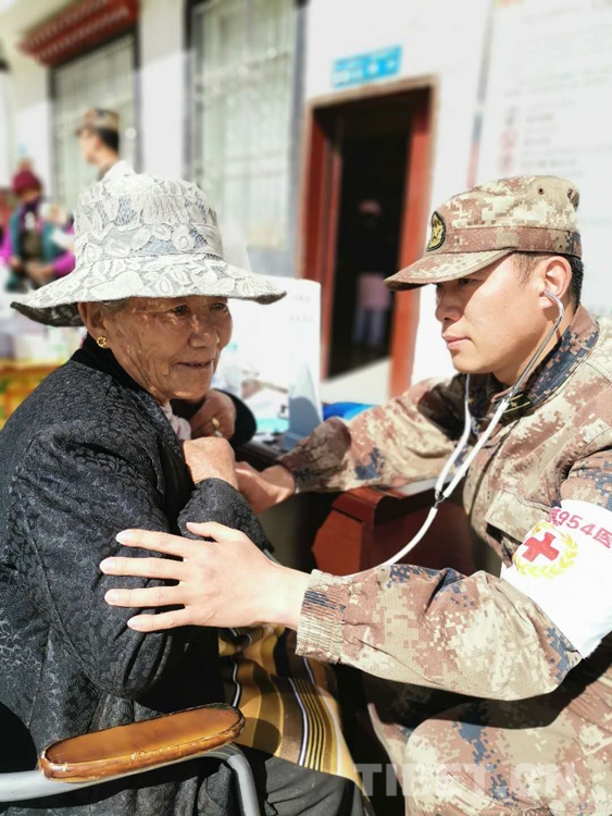 圖為(wei) 3月20日,解放軍(jun) 陸軍(jun) 第954醫院副院長、醫學博士康波為(wei) 瓊結群眾(zhong) 檢查身體(ti) 。