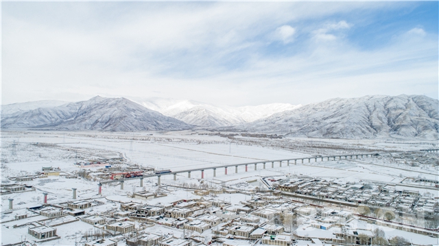 圖為(wei) 拉林鐵路首座聲屏障橋梁穿過千年古鎮傑德秀
