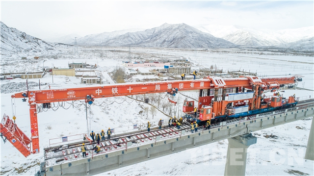 圖為(wei) 中鐵十一局三公司鋪架人員緊張施工中