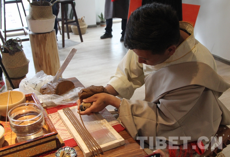 圖為(wei) 活動現場,藏香匠人演示傳(chuan) 統藏香製作技藝。