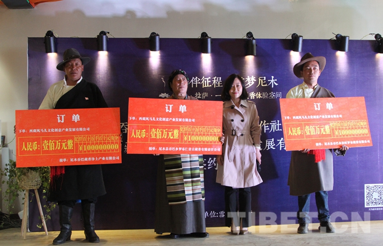 圖為(wei) 三家尼木藏香專(zhuan) 業(ye) 合作社各從(cong) 風馬兒(er) 文創獲得100萬(wan) 元訂單。