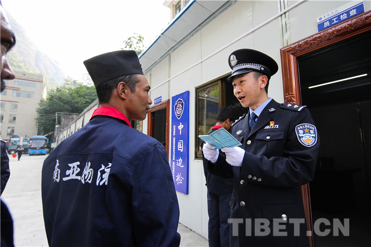 圖為(wei) 聶拉木出入境邊防檢查站的移民管理警察對入境人員進行檢查。攝影:何宇恒