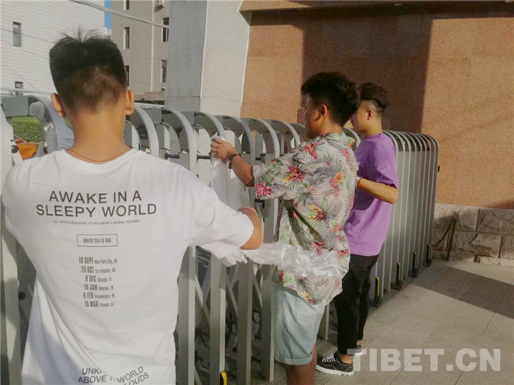 圖為(wei) 離校前,北京西藏中學學生把哈達係在學校大門口