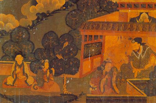 公元709年,吐蕃派遣一支1000餘(yu) 人的隊伍到長安(現陝西西安)迎親(qin) 。公元710年,唐中宗李顯命人護送金城公主進入吐蕃,並設宴命大臣為(wei) 公主餞行。傳(chuan) 說金城公主的嫁奩有萬(wan) 匹綾及諸種工藝,《西藏王統記》曾記載,“帝賜無數遠行之禮物”。