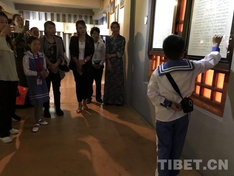 圖為(wei) 小小講解員在根敦群培紀念館為(wei) 參加活動的黨(dang) 員進行講解