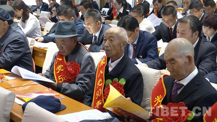 圖為(wei) 受到表彰的光榮入黨(dang) 50年的優(you) 秀共產(chan) 黨(dang) 員