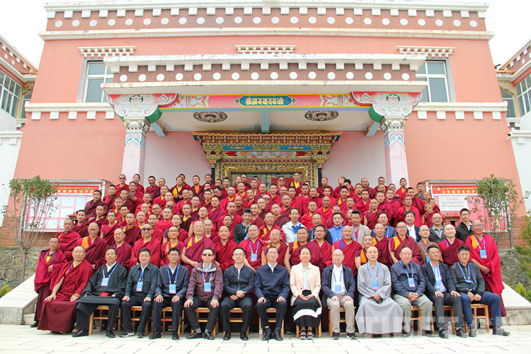 圖為(wei) 與(yu) 會(hui) 嘉賓與(yu) 雲(yun) 南藏語係佛學院教師、學僧合影