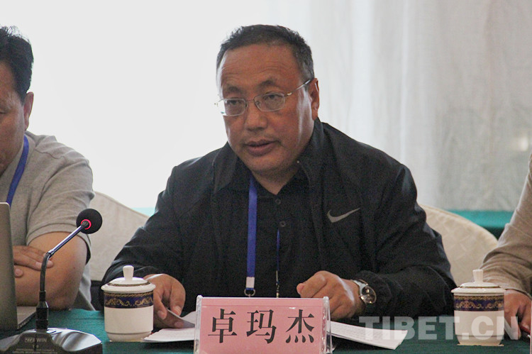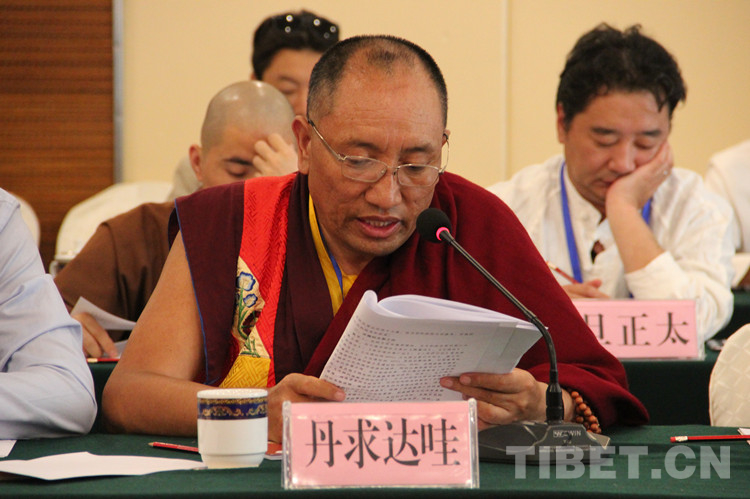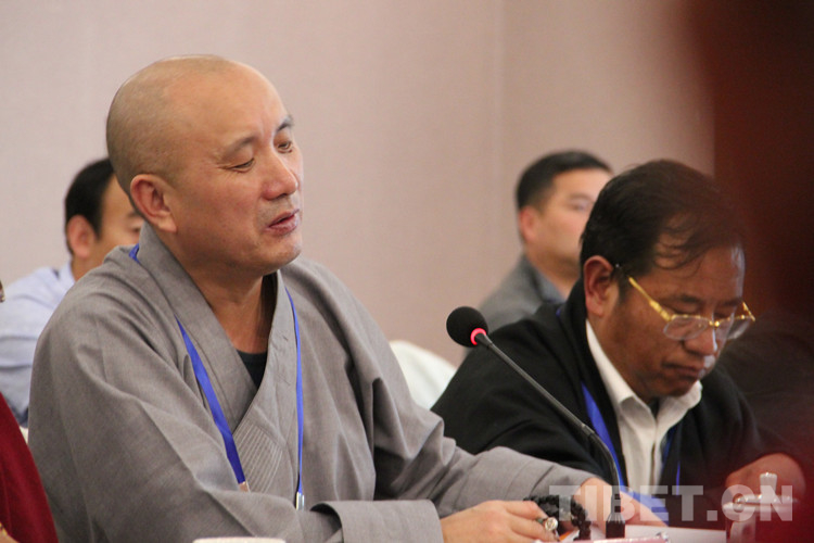 圖為(wei) 西藏佛學院副院長達窮介紹本學院教材建設相關(guan) 情況