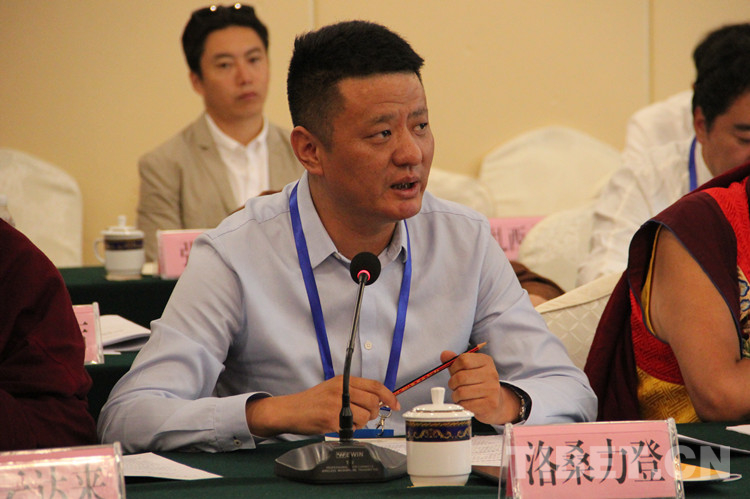 圖為(wei) 四川藏語佛學院副院長洛桑力登介紹本學院教學大綱編寫(xie) 和實踐情況
