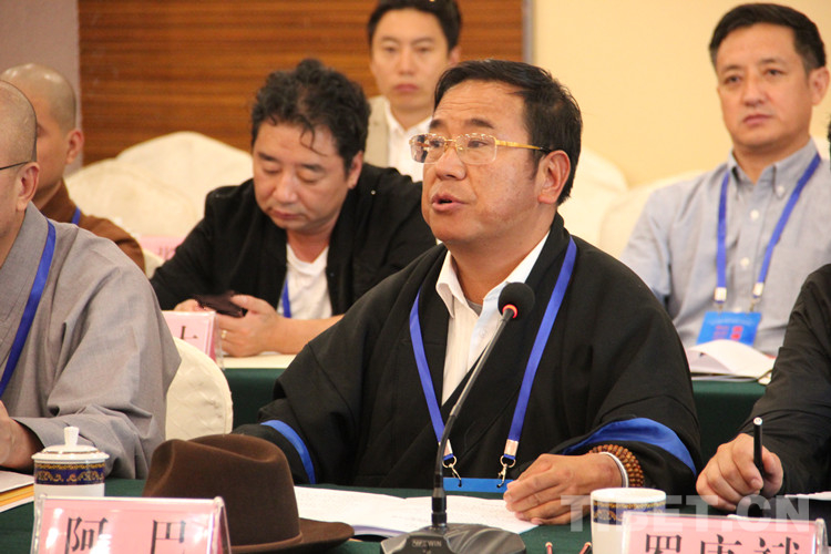 圖為(wei) 雲(yun) 南藏語係佛學院副院長阿巴介紹本學院教學大綱編寫(xie) 和實踐情況