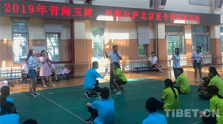 圖為(wei) 來自西藏拉薩的師生和來自青海玉樹的師生為(wei) 增進友誼而進行夏令營破冰活動