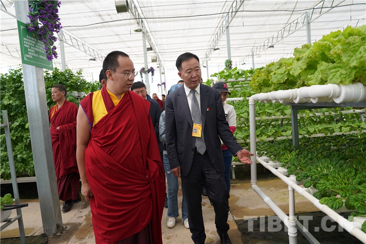 圖為(wei) 十一世班禪參觀考察阿裏地區噶爾縣生態農(nong) 業(ye) 產(chan) 業(ye) 園攝影:王淑