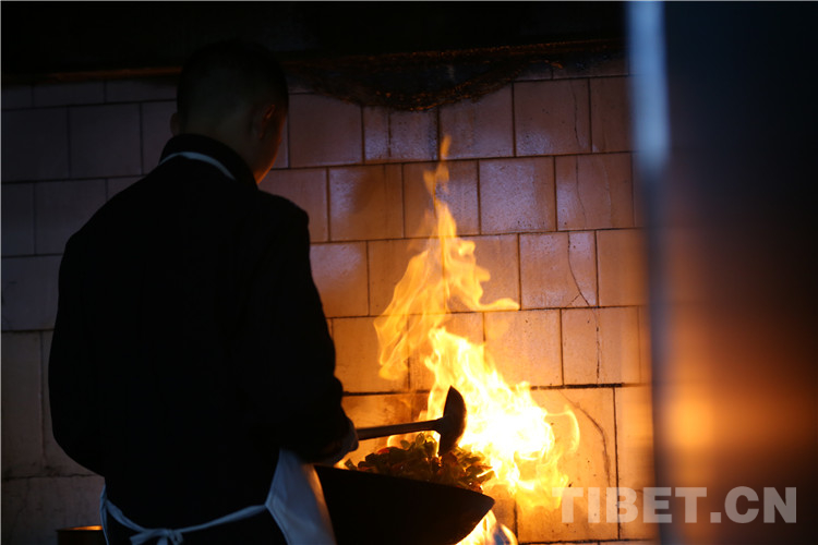 圖為(wei) 炊事員正在烹飪美味,豐(feng) 富民警餐食。