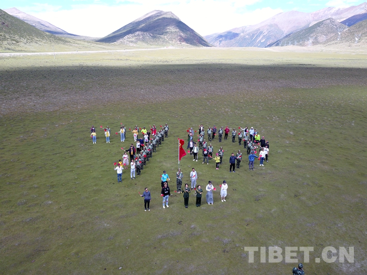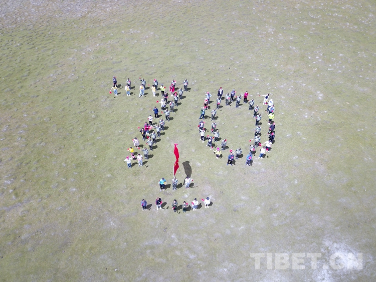8月21日,官兵們(men) 和遊客在川藏線安久拉山擺出“70”字樣,以此迎接即將到來的祖國70華誕。(陸文凱 攝)