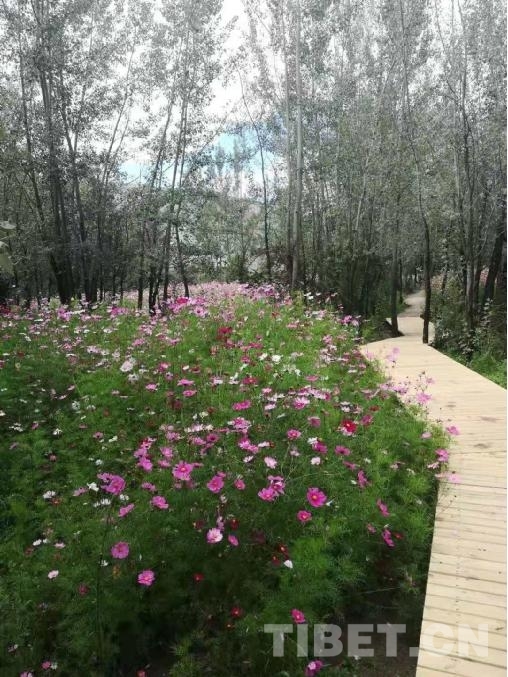被花海包圍的木棧道