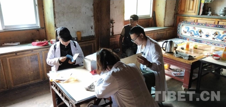 圖為(wei) 羊拉鄉(xiang) 衛生院院長李永生為(wei) 老人體(ti) 檢場景。