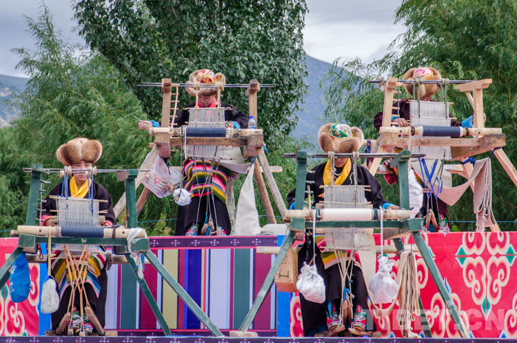 圖為(wei) 開幕式上被搬上舞台的氆氌紡織技藝 攝影:趙耀