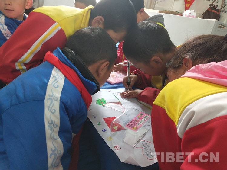 圖為(wei) 理塘縣城關(guan) 第四完全小學開展國慶手抄報活動