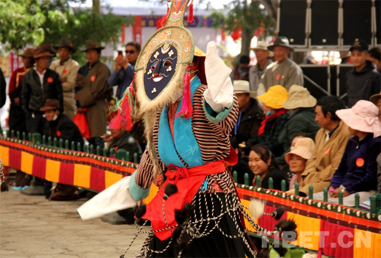 圖為(wei) 羅布林卡公園內(nei) 的藏戲表演 攝影:賈華加