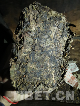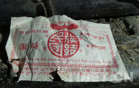 在一個(ge) 殘破的茶箱中,我們(men) 共發現了四張“民族團結牌康磚”標識。標識下方用紅色字體(ti) 寫(xie) 有“中國茶葉土產(chan) 進出口公司四川省分公司”字樣。“民族團結牌”商標形成於(yu) 20世紀60年代,它是當時生產(chan) 邊茶的企業(ye) 可以共同使用的商標,專(zhuan) 門用於(yu) 邊茶產(chan) 品。該品牌在20世紀80年代得到了許多榮譽,在入藏邊茶貿易中享有很高的知名度。我們(men) 甚至在茶箱中發現了半塊殘存的康磚。由此不難看出,在西藏民主改革後,西藏的茶葉供給已經有了極大的改觀,即使位於(yu) 邊境線附近的科迦村,普通人家的茶葉消費也得到了充分保障。
