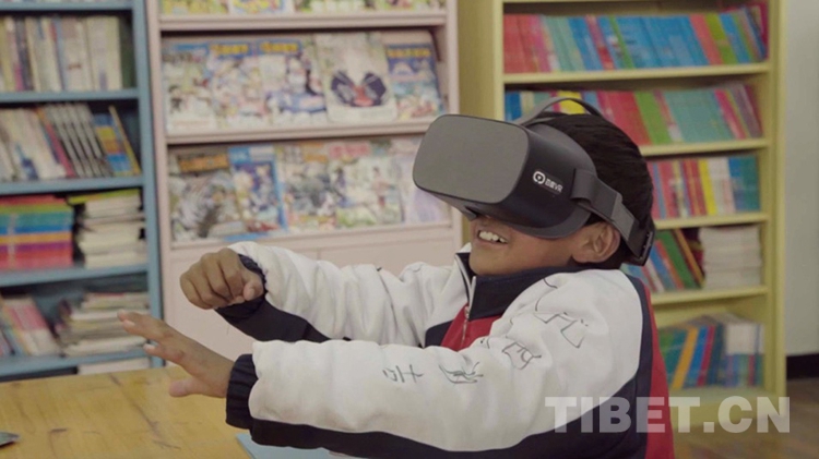 圖為(wei) 拉薩市特殊教育學校學生正在體(ti) 驗VR技術