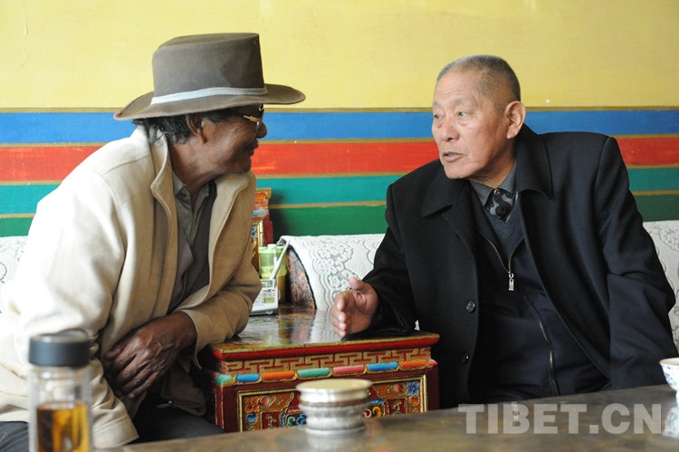 圖為(wei) 當年率領申紮縣牧民群眾(zhong) 開發藏北無人區的傳(chuan) 奇英雄、原西藏人大常委會(hui) 副主任洛桑丹珍(右),專(zhuan) 程來到嘎措鄉(xiang) 白瑪家中,看望當年一同開發藏北無人區的鄉(xiang) 黨(dang) 委書(shu) 記白瑪(左)(2013年7月27日)攝影:唐召明