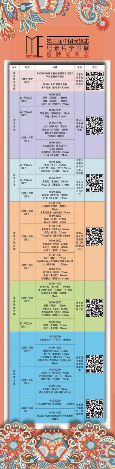 圖為(wei) “中國民族誌紀錄片學術展”放映場次表