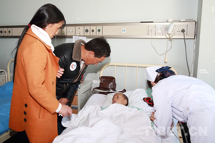 圖為(wei) 手術前周軍(jun) (左三)看望次裏白宗 攝影:陳衛國
