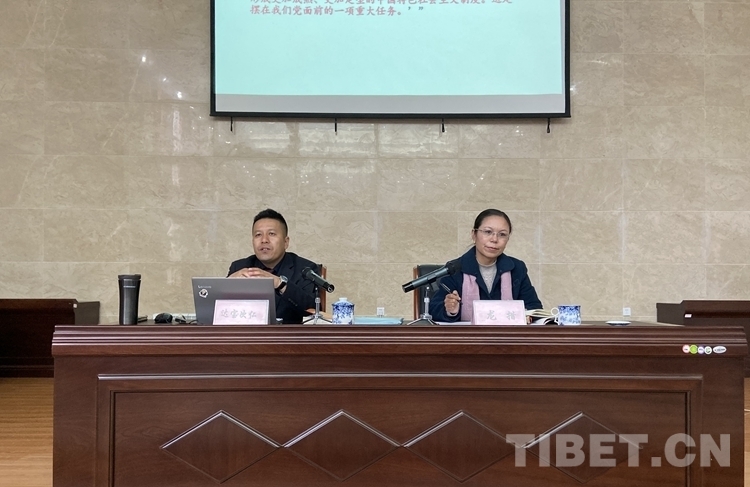 圖為(wei) 西藏自治區黨(dang) 委講師團成員、自治區黨(dang) 校科社教研部達寶次仁副教授作報告 攝影:賈華加