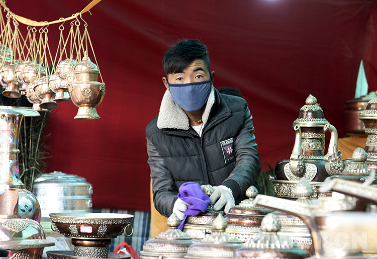 在拉薩八廓商城做尼泊爾銅器工藝品批發生意的旦增和夥(huo) 伴們(men) 早在11月29日便來到山南為(wei) 物交會(hui) 做準備。“這是我第8次參加物交會(hui) ,去年賣了60多萬(wan) 元的貨品,今年爭(zheng) 取賣80萬(wan) 元的貨品。”因為(wei) 看好雅礱物交會(hui) 購銷兩(liang) 旺的市場,旦增的貨物裝了滿滿3大卡車。他告訴記者,今年的場地相比往年,周邊環境更幹淨整潔,基礎設施也更加完善。