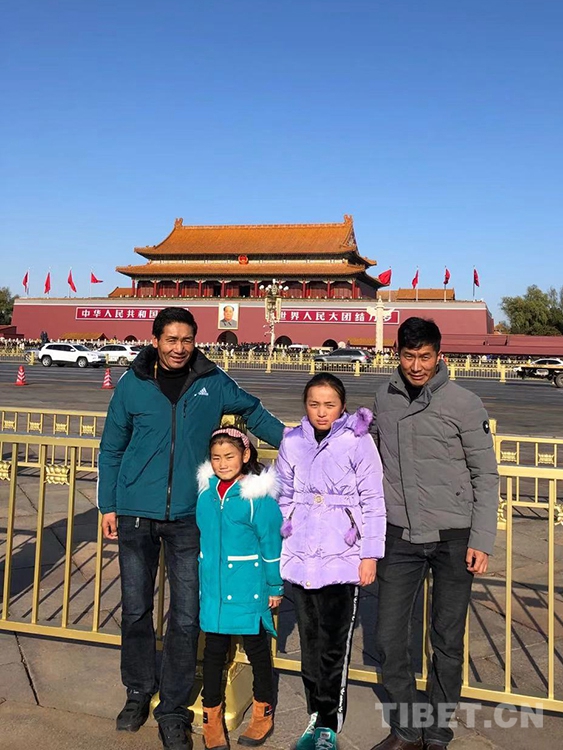 圖為(wei) 離京前洛桑曲宗和次旦德吉與(yu) 家人在天安門廣場留影 共鑄中國心組委會(hui) 供圖