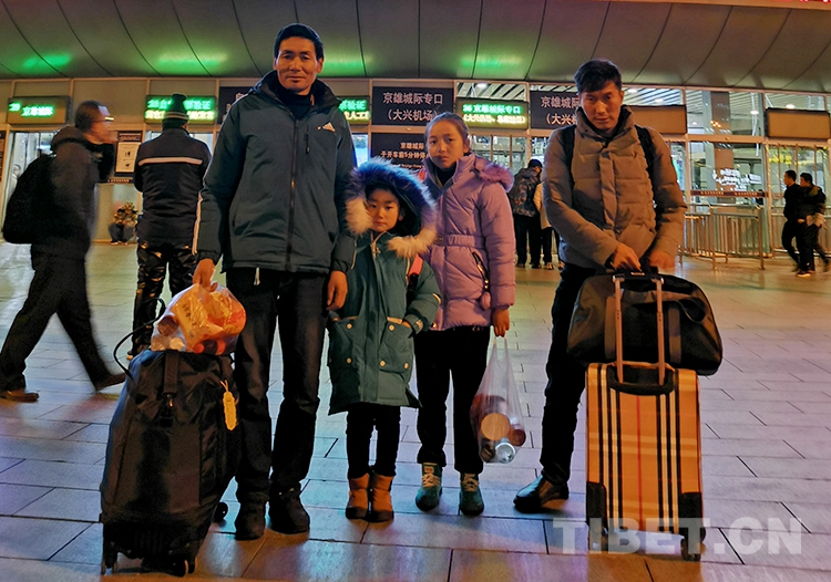 圖為(wei) 洛桑曲宗和次旦德吉(右二)與(yu) 家人踏上返鄉(xiang) 之路 共鑄中國心組委會(hui) 供圖
