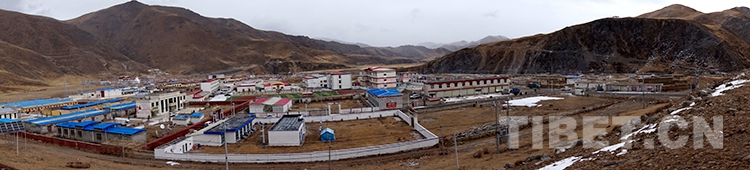 登上尼瑪鄉(xiang) 政府西側(ce) 的一座小山丘,整個(ge) 尼瑪鄉(xiang) 便盡收眼底。這裏並非典型的藏北高原景象,連綿的山脈被河流溝壑所“切斷”,枯黃的草地上不見一顆樹木,也不見成群牛羊覓食。