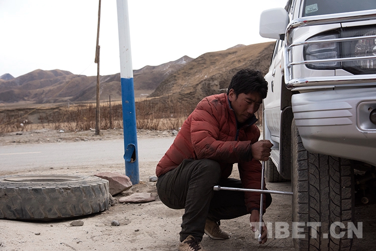 圖為(wei) 嘎瑪在更換汽車輪胎 攝影:王媛媛
