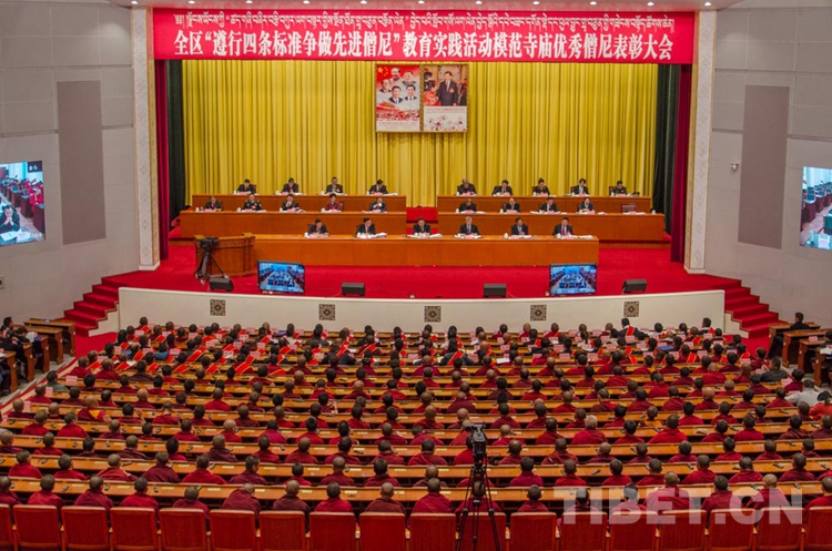 會(hui) 議表彰了哲蚌寺等模範寺廟49座,旦增格桑等優(you) 秀僧尼4130人,拉巴次仁等優(you) 秀寺管幹部140人,色拉寺等優(you) 秀組織單位49個(ge) ,昌都市人民政府先進集體(ti) 1個(ge) ,強久等先進工作者60名。
