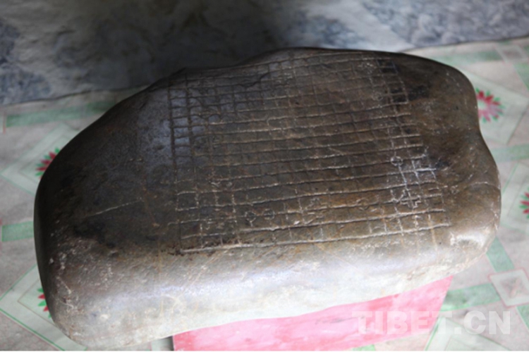 西藏阿裏地區紮達縣托林寺藏有非常完整清楚的古代密芒棋盤。這塊棋盤長約75厘米,寬約50厘米,厚約20厘米,整個(ge) 棋盤十分規整,上麵的紋路清晰精致,據托林寺寺管會(hui) 主任強巴尊珠介紹,這塊棋盤至少有一千年的曆史。