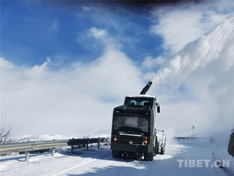 圖為(wei) 武警官兵利用拋雪機在業(ye) 拉山頂除雪現場由於(yu) 海拔較高,氣溫低至零下20多攝氏度,且地勢險要、坡陡彎急,給救援增加了不少難度。為(wei) 盡快搶通道路,官兵們(men) 冒著嚴(yan) 寒、頂著強烈的紫外線,采取了“人機結合、拋灑融雪劑”方式全力奮戰搶通一線。
