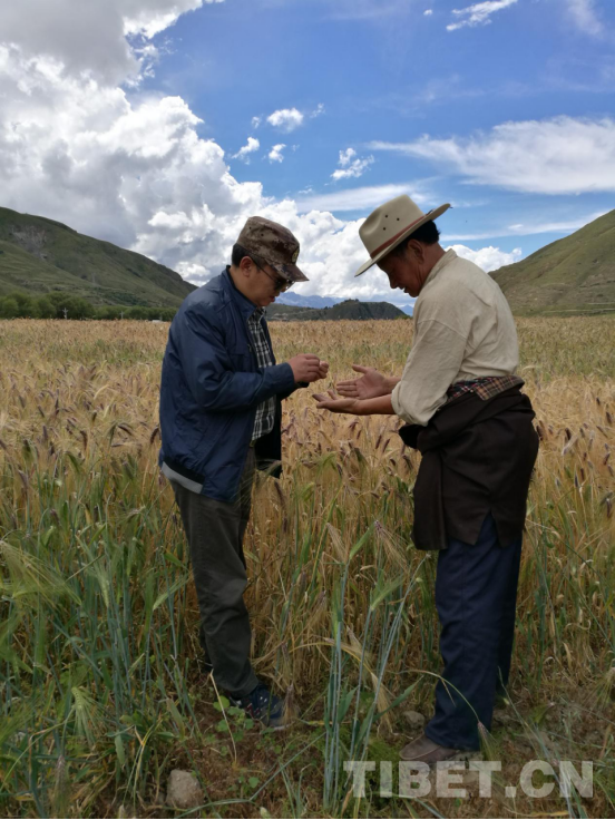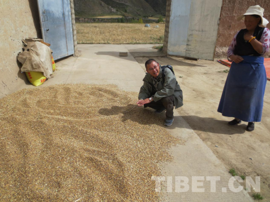 圖為(wei) 唐書(shu) 偉(wei) 在查看村民家的青稞收成情況