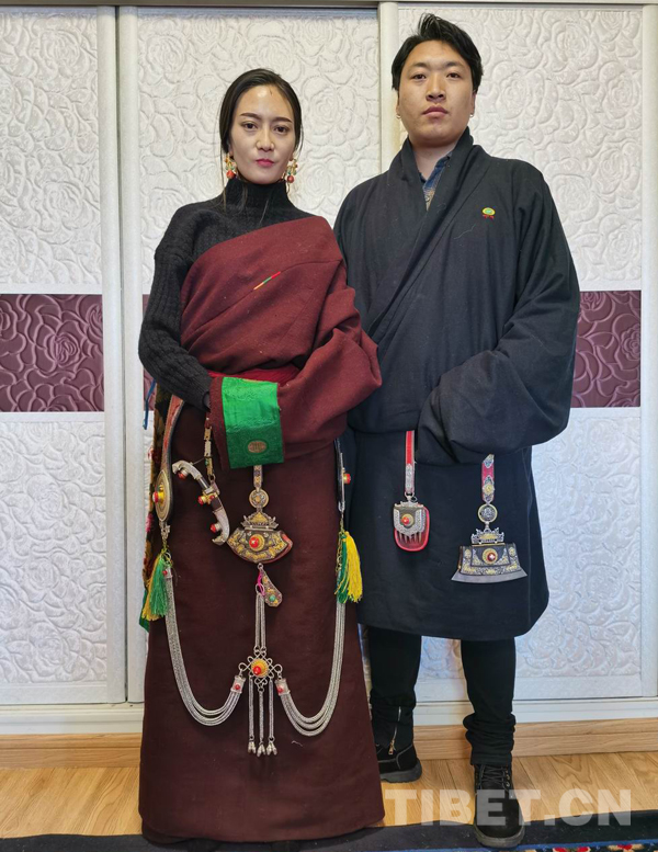 圖為(wei) 索南旦周的小女兒(er) 梅朵和女婿尕瑪才丁佩戴著各式自己打製的金銀裝飾品