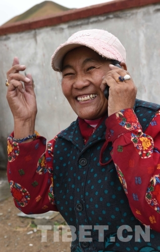 圖為(wei) 次仁朗加使用手機與(yu) 外界通話聯係(唐召明2017年7月26日攝)