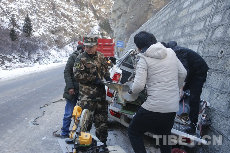 圖為(wei) 官兵在然烏(wu) 溝段解救失事車輛
